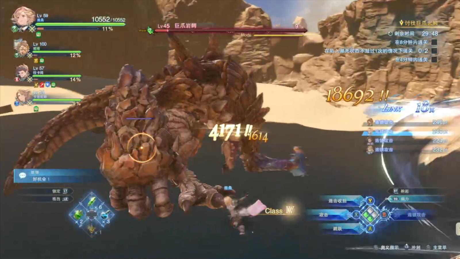 一个单机游戏,由手游大厂开发,制作周期长达八年,期间经历了与合作公司的分道扬镳,重新挖人搭建团队,游戏推倒从头做起,在各大游戏节上持续画饼疯狂跳票,甚至被玩家戏称“只要能出就算赢”。但它最终还是不负众望,赢得新老粉丝的好评,上线第一天10万人在线,这就是2月1号上线的二次元ARPG——《碧蓝幻想Relink》。 《碧蓝幻想Granblue Fantasy》(后称GBF)本篇是cygames的一个页游,早些因其别具特色的画风在二次元游戏中也是吃得相当开,甚至在各个游戏群中时常以类似疯狂星期四的“诈骗”形象出现,骗了不少年轻的玩家点开加入。这游戏还有一个特点,就是重肝重氪,除了词条、属性、武器、召唤兽多中要肝要氪的要素外,就连剧情都超过50万字,为此网友还别名G肝B报F废。而在氪金上,比较知名的事件就有玩家花费70万日元,才抽到当期限定角色,最后甚至引发了国家层面的游戏氪金调整。 虽然乍一看负面的内容貌似不少(实际上也很多),但其实游戏内容相当充实,即便嘴上说着肝,但畅快的角色养成与仅此一家的画风,也都成为这款游戏能长线运营十年的根基,差肯定不会差到哪里去。与此同时在IP的衍生上,CY也有自己的规划,不仅仅出了同名动画剧集,还在2020年推出了二次元格斗《碧蓝幻想versus》,而早在8年前就宣布的《碧蓝幻想Relink》,也在今年2月1号得到了实现。 要评测这款游戏,最为困难的点就是笔者并没有玩过GBF。但好在玩过不少CY的手游,能常常在他们自己内部联动中,接触到不少GBF的角色与内容。所以本期虽然不能完全从路人的角度分析,但也不会有太多的粉丝滤镜。不过我还是想提前给出结论,这款游戏确实是2024开年以来最值得玩的一款动作游戏。 不通马桶不便秘的畅快通关 剧情整体没有太高的深度,故事内容也比较简单,是相当传统的二次元王道拯救故事,这里就不剧透了。对于新玩家来说,也只需要了解GBF中的基础故事设定,就能看懂整个故事,为此游戏开头就有讲解背景,同时也会弹出一些术语解释。但同样,对于新人来说,这段故事的观感不会太好,因为角色虽不少,但没有花笔墨去塑造人设,只有系列的新人物得到了更多描写。 当然,Relink本质上还是一个粉丝向的游戏,既然是原作就有的主角团角色,那不花力气描写也是正常的,想要了解角色的过往与性格,你可以在任务柜台的“命运篇章”与菜单中,查看角色的相关任务与资料文本。 在游戏的结构上,剧情并没有占据太多空间,以主线终章为分割点,前15小时打主线,后面的时间全是养成部分的刷刷刷要素,甚至将这俩部分切割成两个游戏都没问题。因为主线难度不高,且角色的战力养成在主线战斗中升级得相当顺滑,以至于你不需要额外花时间做其它任务提升。 更重要的是,故事发展并不拖沓,刚打完一场酣畅淋漓的boss战后,马上就能上飞艇前往下场boss战。虽然剧情短是短了点,但不需要你天天在城里跑腿,也没有等级锁和战力锁,只要一开始爽就能一直爽。这样的设计让我找回了当年在电脑前一玩就是一天的快感, 对于喜欢看剧情演出的玩家也可以一口气打完,如果打完你觉得boss战足够精彩,角色也足够喜欢,那也可以开始后面的刷刷刷之旅。 既然不用氪金,那花点肝也很合理吧 但如果真要玩通这个游戏,主线故事这点时间连开胃菜都算不上,甚至只能用蚂蚁与大象来形容份渺小。点开养成内容,除了角色等级外,你还会发现技能树那密密麻麻的分支,装备里看不完的因子组合,还有那6把150级的武器上限,单个角色毕业或许就已经要30-40小时了,而这个养成内容,你还得乘以19个角色,刷19份。 其中能看到头的,就是等级与技能树,这部分只要努力刷取对应的多经验任务,要拉满一个角色并不是什么难题,并且越到后期,角色解锁后的等级就越高,多利用这些刷取技巧很快就能全员满级。 玩家花费时间的大头,主要还是在刷不完的因子上,这就跟怪物猎人刷珠子如出一辙。每个因子都有着不同的效果,攻击、体力、各种抗性珠子、减CD、暴击率、暴击伤害、伤害上限等等,虽然有着多个刷取方式,但全部都是随机出现。而等玩家解锁到了巴哈姆特本,还会刷出角色专属的因子。所以想要一个角色真正毕业,真的非常耗时间,也就是临近过年,大部分玩家都能坐下来爽刷了。 游戏中的19个角色,每一位都有不同的战斗机制输出。比如最朴实无华的团长姬塔,既能打辅助也能打输出,关键在于让其在战斗中特有的Class系统达到4级,每一个连段的最后一下击中,或是完成弱点击破,都可以增加层数,到达4级后所有的技能会能力最大化,你需要在这段时间内将技能放出,并且争取在下一套技能cd转满前保持Class4。与姬塔类似的还有目前比较热门的“水老头”尤达哈拉,他就是靠叠幕完成输出。 另外还有两种角色,一种是刷连击数,一种是叠被动使用蓄力攻击。玩家们最喜欢的太刀美少女组合“奶刀”娜露梅,就需要在每个招式的最后一击切换风格,叠蝴蝶数量后继续连击增伤;最好理解的蓄力角色就是拉卡姆了,远程角色,在使用技能与普通攻击达到枪支红温后,可以快速蓄力放炮,其大部分技能组也都是为了红温做准备,既简单也好上手。 当然,角色之间也有一定的共通玩法,就是完美闪避与完美格挡,两者的完成后的收益都非常大。前者完成后会有几秒的无敌时间,所以即使面对快速连发的技能也能毫发无损,后者则带