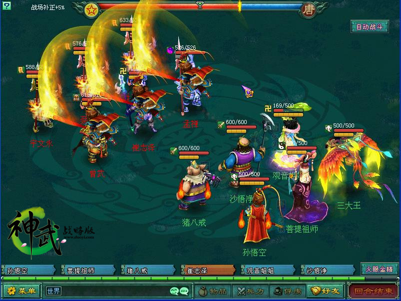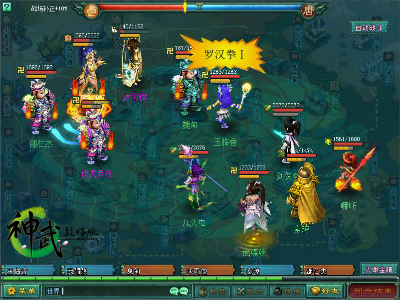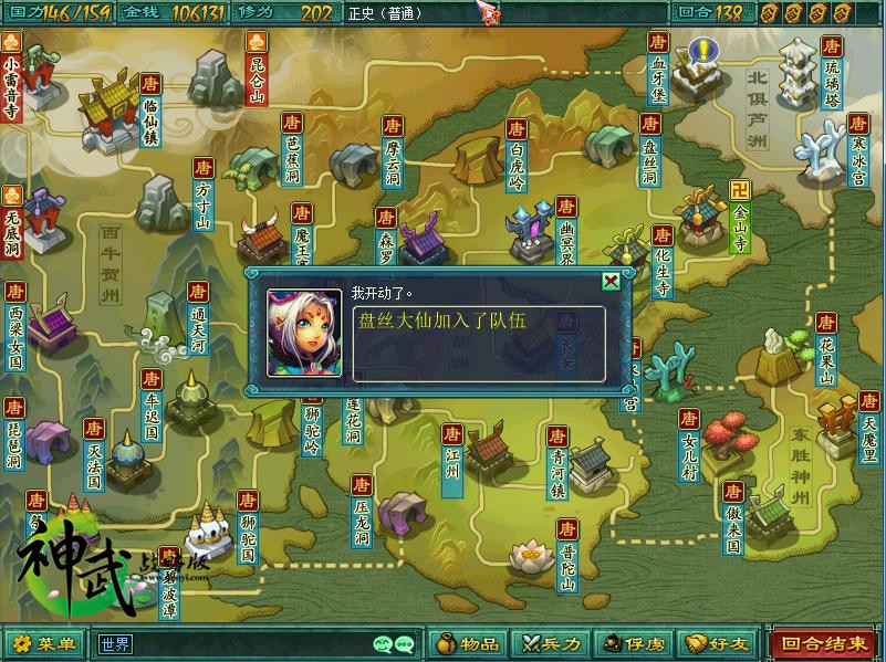 《神武战略版》是多益网络自主研发,以《西游记》为题材的回合制类战棋网游。 进入游戏后,玩家将化身天命之人,领军大唐的将领,收复大唐边疆,攻克西经路上四周的妖魔据点,降伏各路神仙妖魔将领。西游路上将会遇到各种各样的奇妙事件,例如闯龙宫、误掀蟠桃树、偶遇女儿国等,乐趣无穷。 《神武战略版》共有十七种特色兵种,除了常见的刀兵、枪兵、弓兵、法师等,还有妖道、强盗、猴兵、鬼兵等极具西游特色的兵种。游戏过程中会,大家会遇到各种神仙妖怪、历史名将,无论是桀骜不驯的孙悟空,还是妖媚诱人的盘丝大仙,都可以将他们收归麾下,助玩家完成一统三界的大业! |