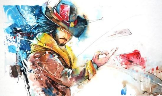 老爸为儿子创作LOL英雄水彩画 设计师点赞